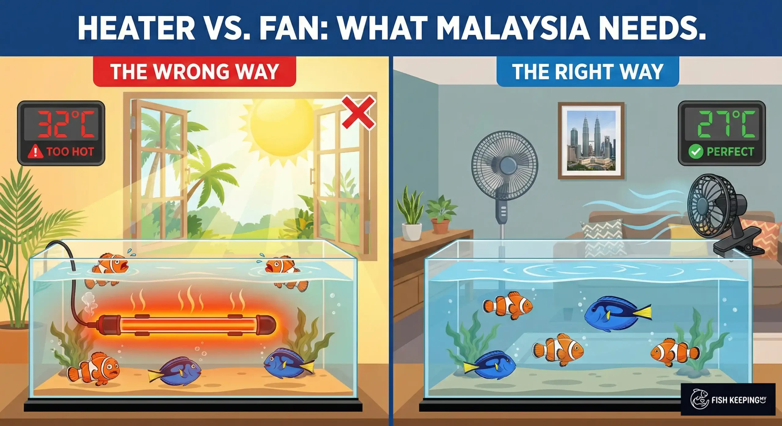 If you read aquarium guides from the USA or UK, they always say: “Step 1: Buy a Heater.”If you live in Kuala Lumpur or Penang, please ignore that advice. Our problem isn’t the cold; it’s the heat.The average water temperature in a Malaysian home (without air-con) sits between 29°C and 31°C. If you add a