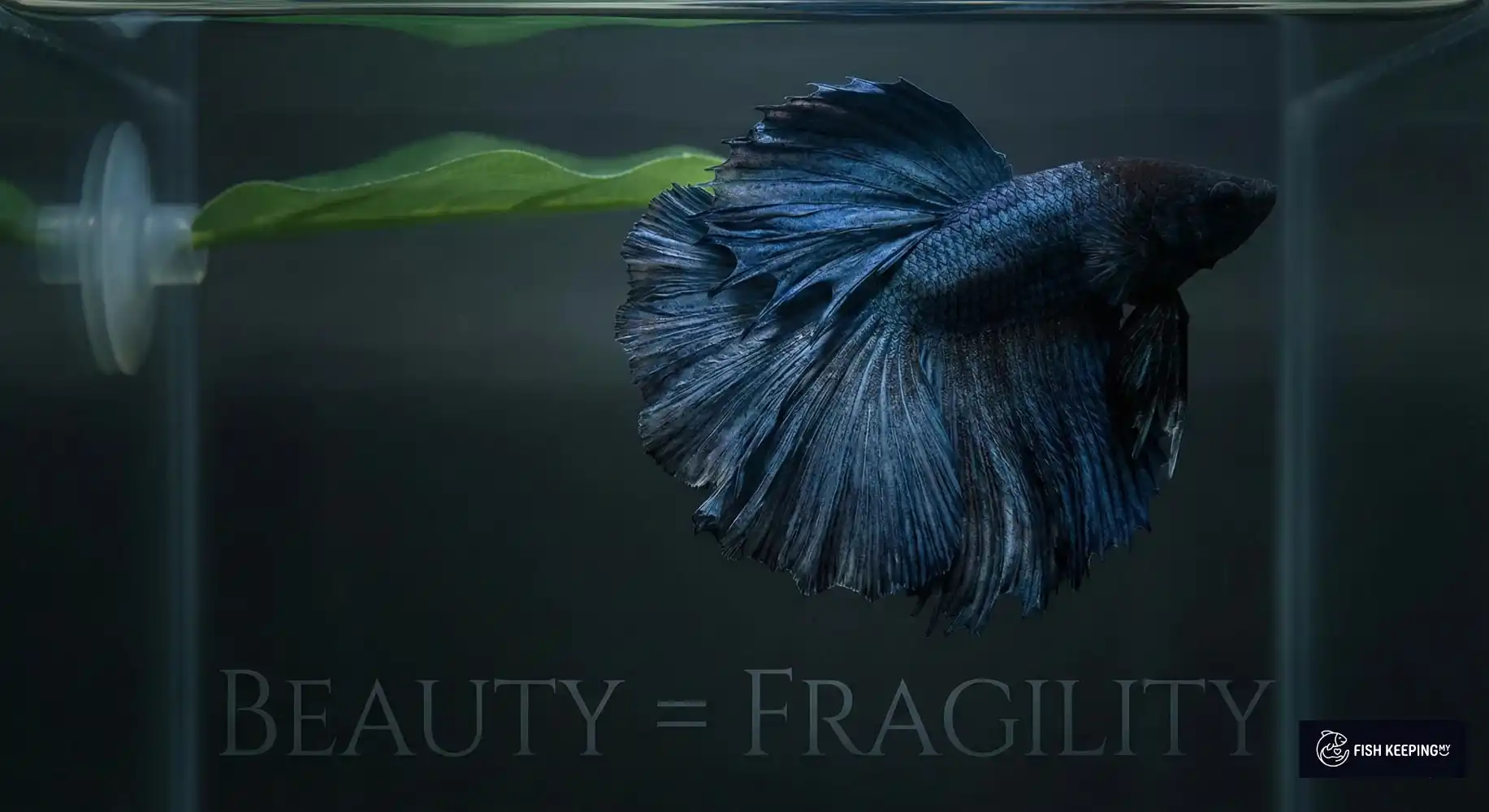 • The Truth: These fish are practically handicapped. The fins are so heavy they often cannot swim properly. They almost always bite their tails or develop “ray collapse.”